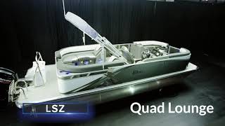 2025 LSZ QUAD LOUNGER Grab the wheel of the Avalon LSZ from our Signature Collection and hold on tight, because this will be the ride of a lifetime. This affordable yet elegantly stylish, brilliantly constructed pontoon features custom Deco wall design and plush handcrafted furniture. Personalize your LSZ with the level of performance & amenities that fit your lifestyle. Available in these layouts.